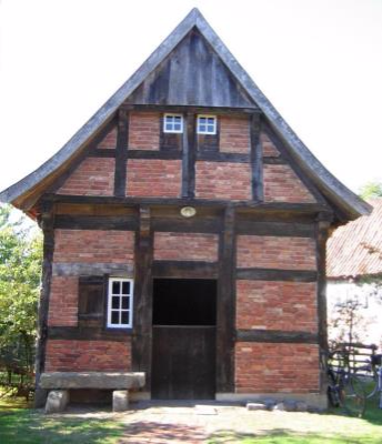 Fürstenau, wurde von Heinz Pöpping vor dem Abrissbagger gerettet und befindet sich heute auf seiner Fachwerkhofanlage in Elte, Schulte-Elte-Straße 17.