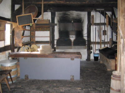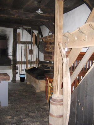 Das Backhaus, auf dessen Dachboden in der Vergangenheit übrigens auch das Getreide gelagert wurde, war früher neben der Küche im Wohnhaus meistens der einzige Raum, der wenigstens zeitweise noch geheizt wurde. Deshalb nutzten die Bauern das Backhaus auch als Werkstatt, wo oft sogar eine Hobelbank vorhanden war.